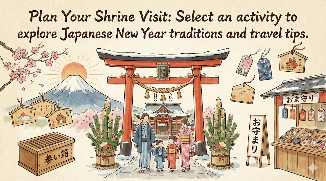 Select an activity to explore Japanese New Year traditions and travel tips.