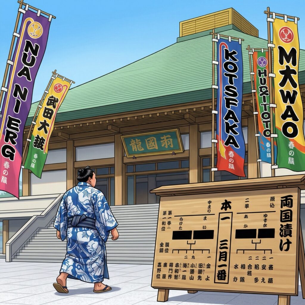 Even if you visit outside of the tournament months (January, May, and September), the Kokugikan remains a fantastic cultural landmark. You can visit the free Sumo Museum located on the first floor to see historic woodblock prints, colorful ceremonial aprons (kesho-mawashi), and ancient official rankings (banzuke) dating back centuries. Surrounding the arena, you’ll often find colorful banners (nobori) adorned with famous wrestlers’ names fluttering in the spring breeze, setting the perfect stage for exploring this traditional hub.